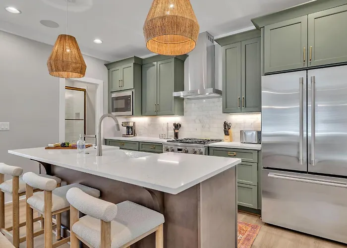 The villa is in close proximity to FirstBank Stadium, featuring easy access to The Escape Game Nashville, which is a mere 5 minutes' walk away. Bridgestone Arena is nearly 15 minutes' drive away and Nashville International airport is 10 km from this accommodation. For sports enthusiasts, the 3-bathroom villa is an ideal starting point to discover Nashville's athletic scene, with Nissan Stadium, situated 15 minutes away by car.