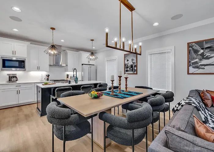 This Nashville accommodation comes with a refrigerator, an oven, and kitchenware in a fully furnished kitchen for cooking. The 3-bathroom villa is opposite Calypso Cafe, where guests can enjoy various meals. Nashville International airport is reachable within a 10-minute drive from Nashville - 426 E Iris Dr Unit 104.