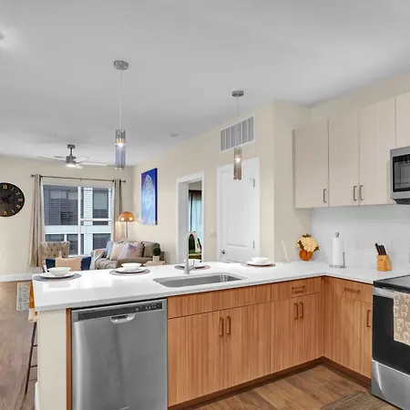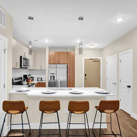 The 102 m² Chateau De Capri Nashville W Pool Gym Free Parking is located within a 5-minute drive of Country Music Hall of Fame and Museum and about a 25-minute walk from St. Mary of the Seven Sorrows. Offering access to an outdoor pool area, this 2-bedroom property is just next door to The Gulch.