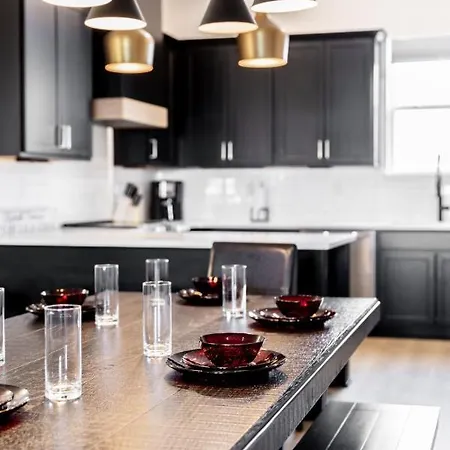 Diamond Retreat Townhome 7 Beds 3 Mi To Downtown offers a balcony and a dining place, along with a multi-channel television and wireless internet, and such comforts as an iron and ironing board, and climate control. Featuring a separate toilet, a bath, and a shower, the bathroom also comes with a dryer and towels.