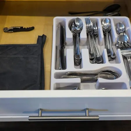 Along with coffee and tea making facilities, a fully equipped kitchen is provided in this accommodation for cooking purposes. There is also a microwave oven, a refrigerator, and kitchenware available in the kitchen.