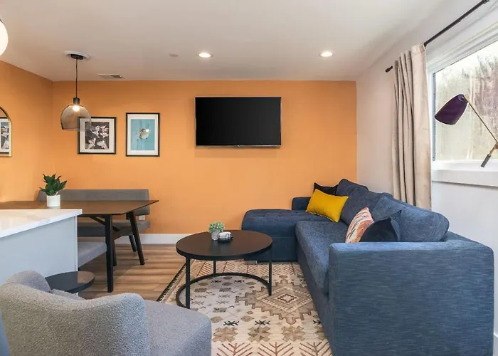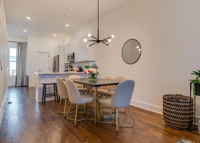 US$ 654 price for 1 nightMore detailsCheck rates - Designer Hillsboro Village Rooftop Home, Open Plan, Sleep 12 With Smart Tvs, Gourmet Kitchen & Pet-Friendly Comfort, Walk To Pancake Pantry, Boutique Shopping & Vanderbilt, Minutes To Belmont, 12 South & Broadway, Garage Parking, 24 Hr Hospitality