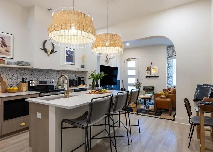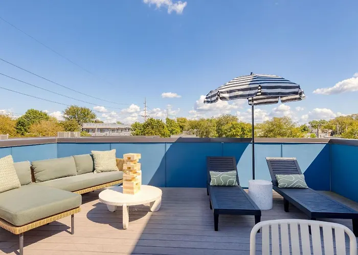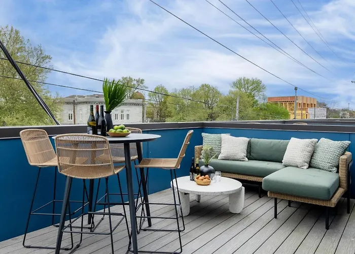 East NashvilleThe 5-bedroom Summer End Sale Prime Location Villa offers proximity to such city sites as Hip Zipper Vintage, located just 5 minutes' walk away.View details+More detailsCheck rates - Private Rooftop With Garage Walk To Restaurants Shops And Coffee