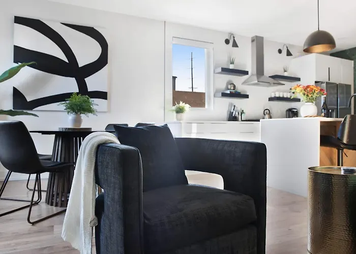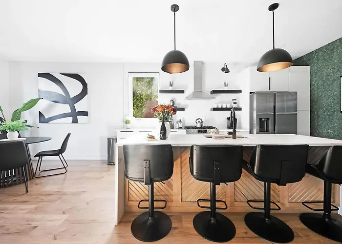US$ 526 price for 1 nightMore detailsCheck rates - Stylish 4Bed Retreat With Rooftop, Garage, Peloton, Sleeps 12, Fire Table, Gourmet Kitchen, Cozy Living Space, Dedicated Parking, Near Distilleries, Marathon Village & Nightlife, Chic Skyline Views, 24 Hour Hospitality