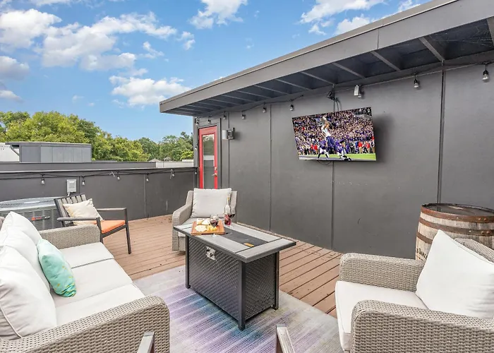 1203 Jefferson StNestled approximately a 10-minute ride from Cumberland Park, Jazz Junction 2 Bedrooms 5 Beds 7 Mins to Broadway villa entices guests to explore various tourist destinations nearby.View details+More detailsCheck rates - Nashville Rooftop Vibes Close To Broadway
