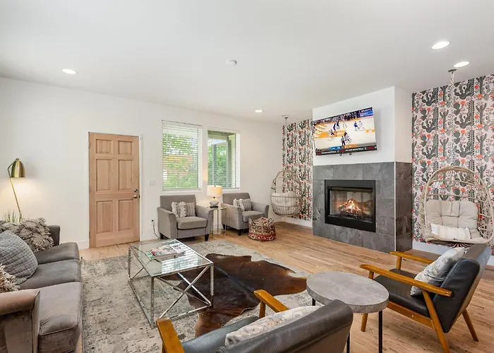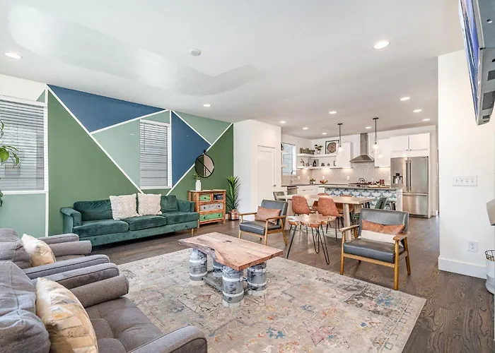 US$ 141 price for 1 nightMore detailsCheck rates - Hot Tub, Rooftop, Skyline View, 5Mins From Stadium, Less Than 10 Mins To 5 Points And Broadway, 3 Spacious Suites, Workspace, Garage Spaces And Ample Parking, 24 Hr Hospitality