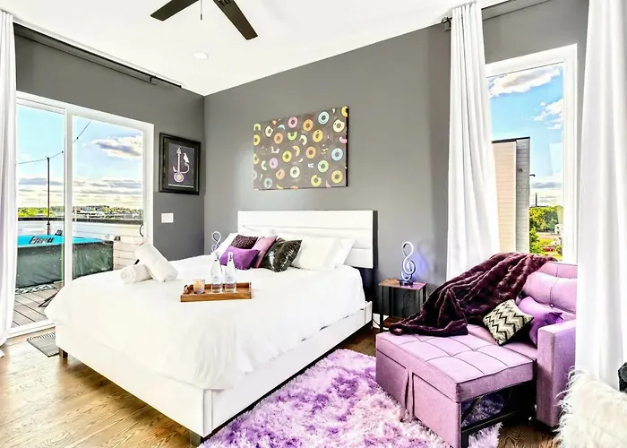 Fern Avenue 114BThe 5-bedroom Epic Luxury Mansion w Nashville Skyline Views villa offers swift access to various city sites, such as Zion Missionary Baptist Church, situated around 5 minutes' walk away. Providing…View details+More detailsCheck rates - Downtown Nashville Hot Tub Game Room Karaoke