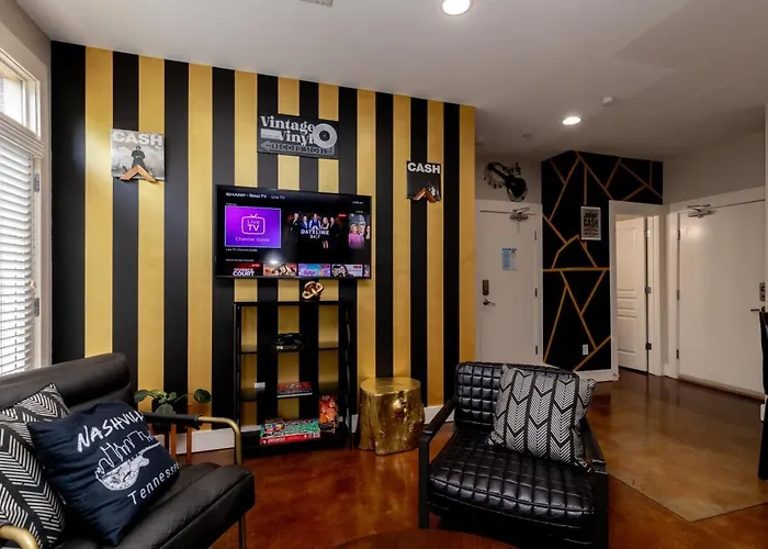 West EndSituated approximately a 5-minute walk from dose, the 2-bedroom Cashville Near Music Row Private Balcony villa offers quick access to numerous city landmarks nearby.View details+More detailsCheck rates - West End Getaway For 5 With Pool
