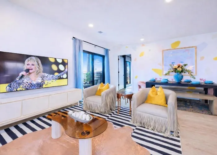 1142 Harmony WaySituated approximately a 10-minute drive from The George Jones, the 4-bedroom Music City Harmony Beautiful Home Lux Rooftop entices guests to explore various tourist attractions in the area.View details+More detailsCheck rates - Dibs On Nashville By Maddox Hotel