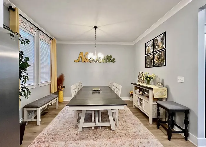 US$ 293 price for 1 nightMore detailsCheck rates - 1-Story Home, Fenced Yard, Grill, Firepit, Parking, Sleeps 10, Pet-Friendly, Smart Tvs, 10 Mins To Nissan Stadium & Five Points, Cozy Bedrooms, Outdoor Fun, Perfect For Families & Groups