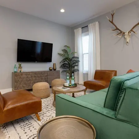 The 4-bedroom Luxury Downtown Townhome Elevated Skyline Views villa offers quick access to such city attractions as Saint James Missionary Baptist Church, located just a 6-minute stroll away.