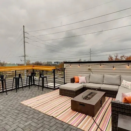 Luxury Townhome! Rooftop-Game Room! Near Broadway! features climate control, a flat-screen TV with satellite channels, as well as overlooks the city. Guests can also enjoy a balcony and a dressing room, along with a sofa set and a writing table. This property comes with a bathroom with a separate toilet and a shower. Dryers and bath sheets are included for added comfort.