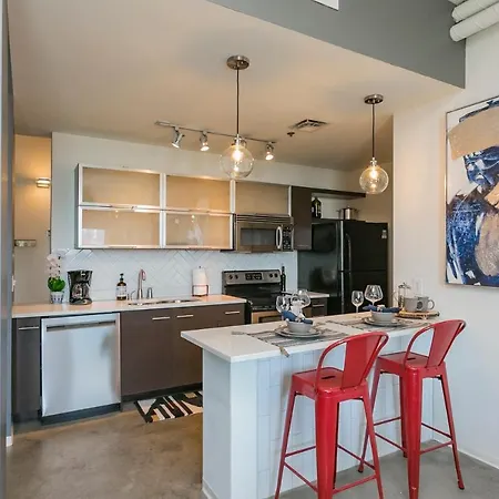 A fully equipped kitchen along with coffee/tea making machines are available in the Nashville accommodation. The kitchen also offers a microwave oven, a fridge, and kitchenware. American cuisine is served at Demos' Restaurant, which is located 16 minutes' walk from this villa. Mid Century Modern Downtown Condo 30+ Night Min can be reached by car in 15 minutes from Nashville International airport.