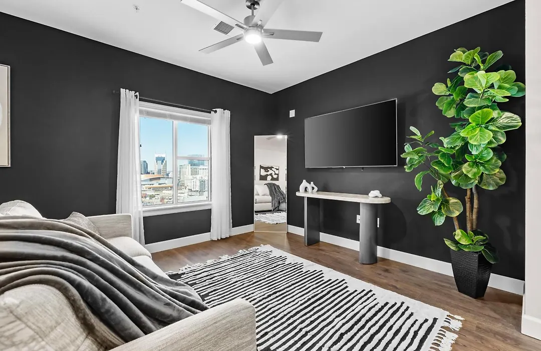 The centre of Nashville is reachable within a 20-minute walking distance. This 2-bedroom apartment is a minute away from The Gulch.