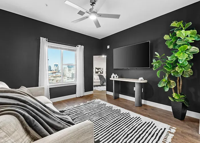 105 m² Midnight Manor Penthouse Suite The Gulch Nashville is located only 1.7 km from RCA Studio B and within 15 minutes' walk of Nashville First Baptist Church. This apartment features Wi-Fi, along with private car parking for guests travelling by car.