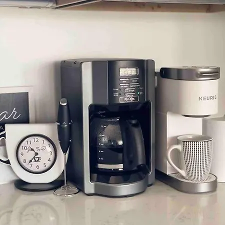 A fully furnished kitchen along with coffee and tea making equipment are available in Spacious Home W Rooftop Deck And Mural! 10 Min 2 Dt. Guests can also make use of a fridge and an oven to prepare their own meal.