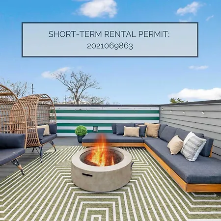 Located in the East Nashville district, a 5-minute walk from Ramsey Street Church of Christ, The Bronco - Beautifully Designed With Rooftop Patio villa offers patio views. The 4-bedroom villa features opportunities for cycling and fishing in the area, 2.7 km from Ryman Auditorium.