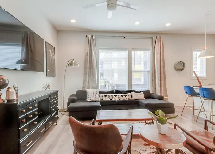 This accommodation in the East Nashville district is situated around 15 minutes' drive from Country Music Hall of Fame and Museum and around a 10-minute ride from such shopping places as the lively daily Farmer's Market. The villa is nestled around a 10-minute ride from natural attractions like Riverfront Park. This villa offers sports enthusiasts to discover the multi - purpose Nissan Stadium, located 4.1 km away.